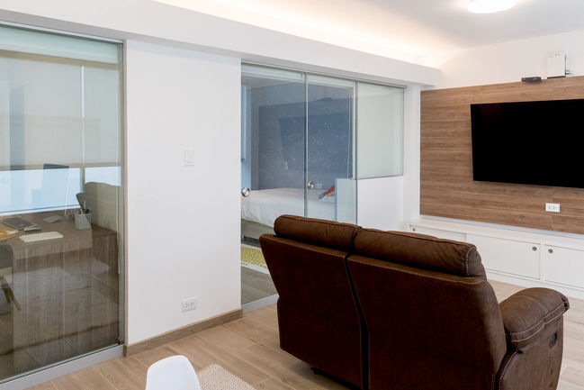 Remodelación integral de departamento Miraflorino. Se aprovechó la luz natural, conectividad y amplitud de los espacios; característico de la arquitectura de los 60's. Esto se combinó con texturas suaves modernas y color para aportar carácter a cada espacio.